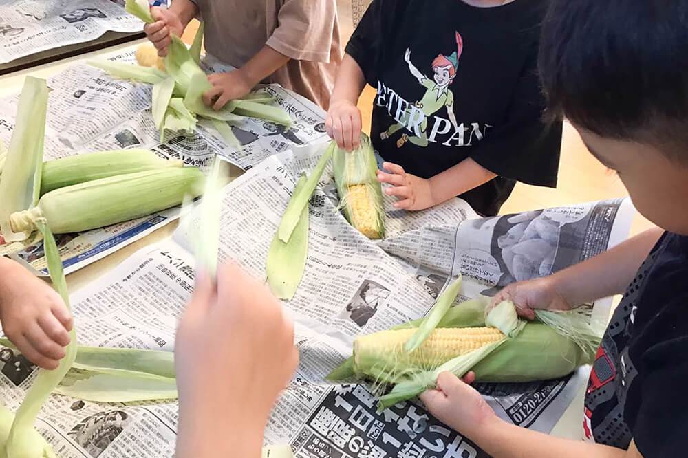 とうもろこしの皮むき -