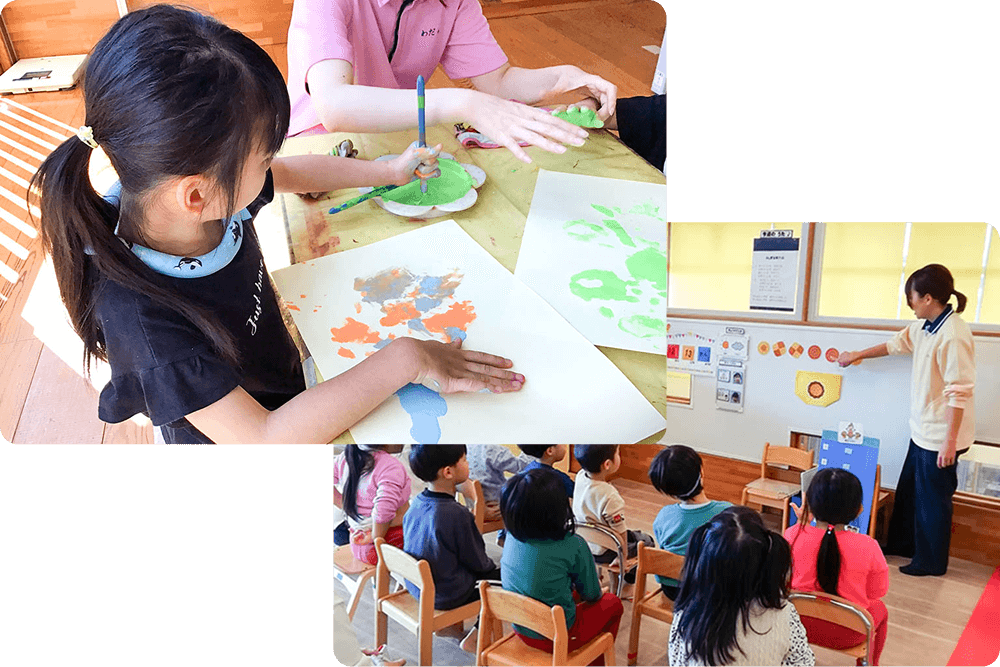 個別に作成した児童発達支援計画に基づき、小集団での活動を通して、お子さんの状況に応じた療育を行います。また、日常活動や行事において、併設の認定こども園児童との交流も行います。